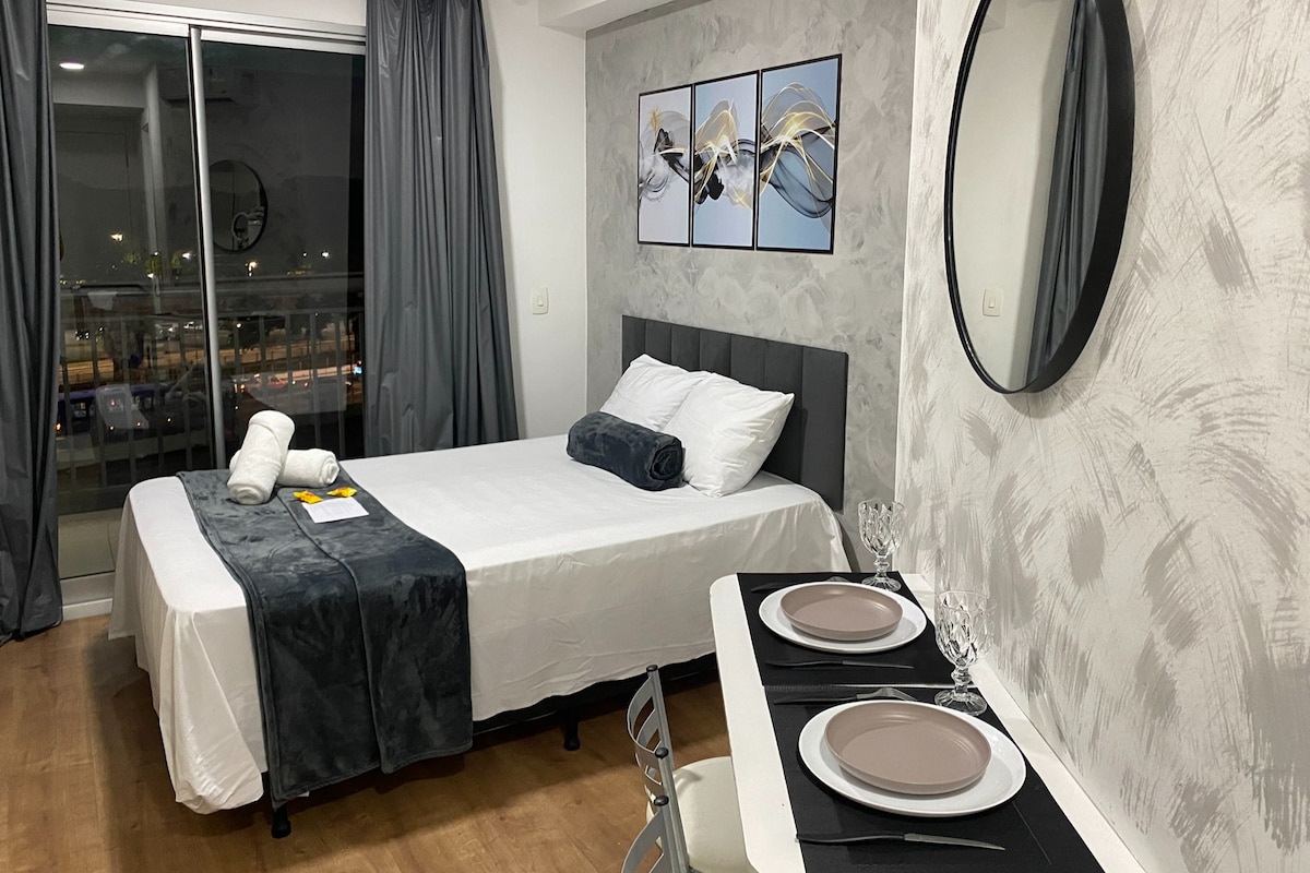 O Stúdio 906 foi idealizado para oferecer conforto e requinte aos seus hóspedes, além de praticidade nos minimos detalhes. Oferecemos um apartamento luxo de 29m completo e mobiliado, TV de 55", ar-condicionado, frigobar, enxoval de excelência, ótima internet, cama aconchegante e muito mais. O edifício além de moderno e localizado na área central possui lavanderia, mini shopping, supermercado, próximo ao aeroporto internacional, bares, restaurantes, bosque. Você irá se sentir em casa!