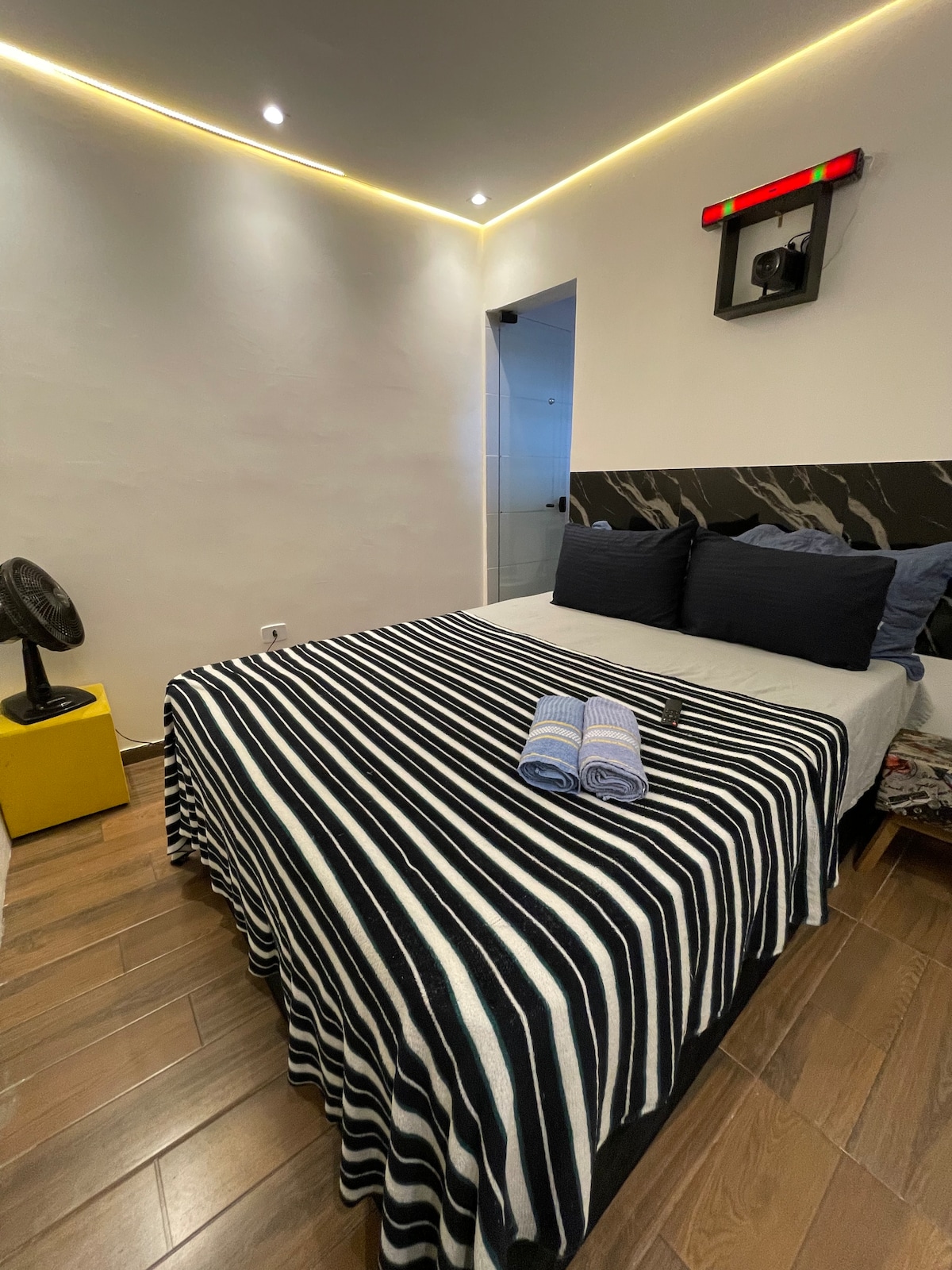 Experience One Eleven in Vila Olimpia. This modern apartment features large windows with breathtaking city views and natural light. The unit boasts 600 Mbps internet and a 4K HD TV. For total comfort, it has a Hot/Cold AC system: 27,000 BTU/h unit in the living room and 10,000 BTU/h in the bedroom. The bedroom is quiet and dark for a restful sleep. Impeccably maintained, you’ll be walking distance to top restaurants and business hubs—a safe, upscale retreat with a stunning urban backdrop.