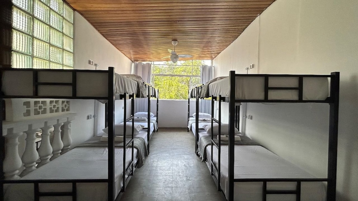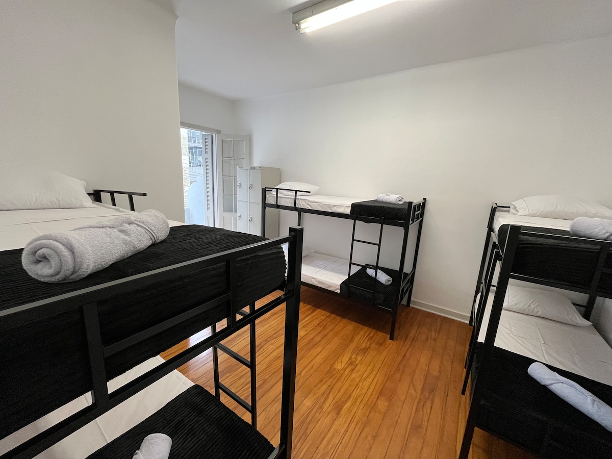 Quartos compartilhados com 6 e 9 camas. Os quartos contém: cortinas, ventilador, tomada individual, led para leitura, guarda roupa individual. Além de TUDO isso que te passei até aqui, o quarto contém, sacada com vista com acesso para praça Liberdade Temos também Quartos Privativos. NOS ENVIE UMA MENSAGEM PARA SAIBA MAIS.