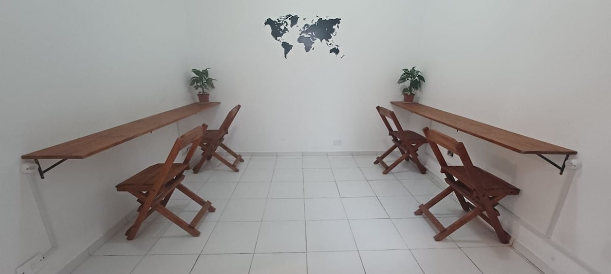 Pra quem prefere ter seu próprio canto e ainda poder conhecer novas pessoas e trocar experiências, a melhor opção é o quarto privativo do neighbor.HUB! Tem espaço para acomodar suas coisas (arara de roupas, um gaveteiro e baú) e é perfeito também pra quem vem em casal. Possui mesinhas laterais à cama e uma bancada maior para apoio e/ou espaço de trabalho e um ventilador. O acesso ao espaço é feito por escadas.