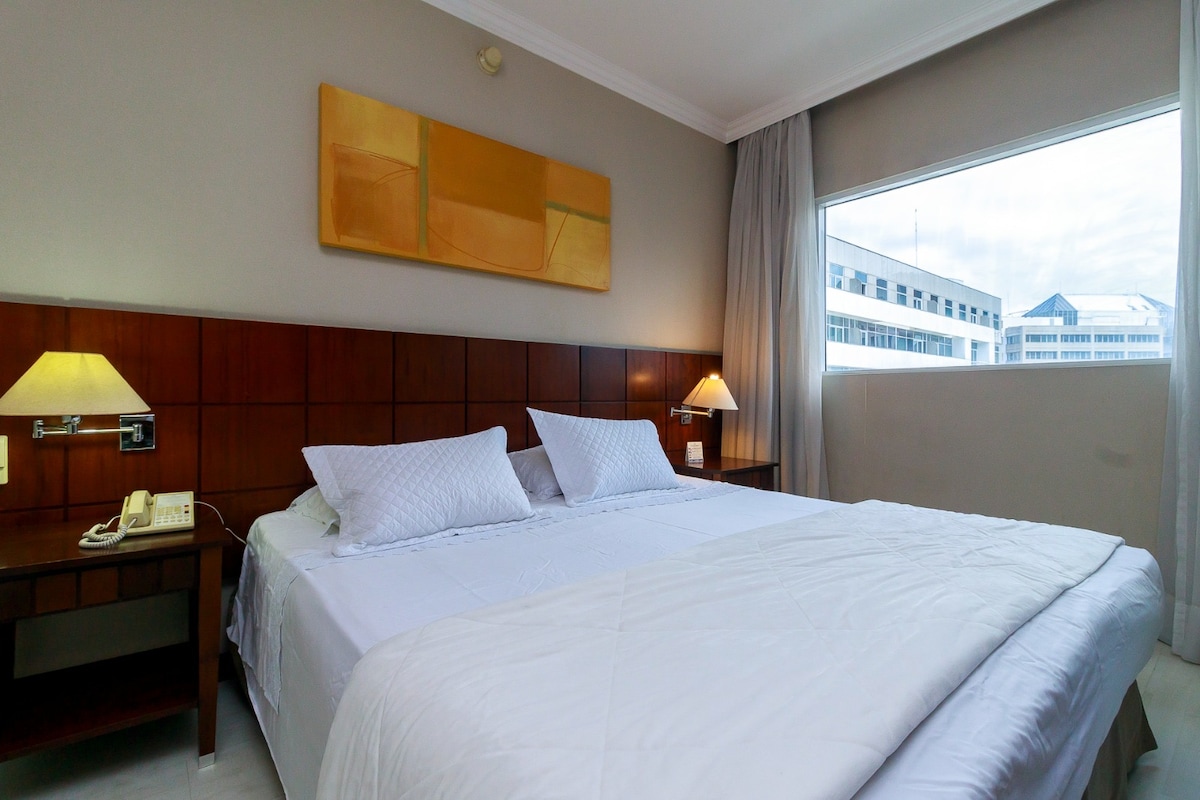 Você não vai querer sair desse lugar charmoso, aconchegante e único. Localizado dentro do hotel e-suites Atlântica Congonhas, próximo ao aeroporto de CGH com valet que pode ser contratado à parte (R$30 a diária). O espaço está equipado com tv smart, ar-condicionado, secador, Wi-Fi, chaleira elétrica, cafeteira Nespresso, ferro de passar e outros. Fique hospedado perto dos principais ícones de Sp: parque do Ibirapuera, av paulista, sp Expo, consulado americano, etc. Recepção do hotel 24h.