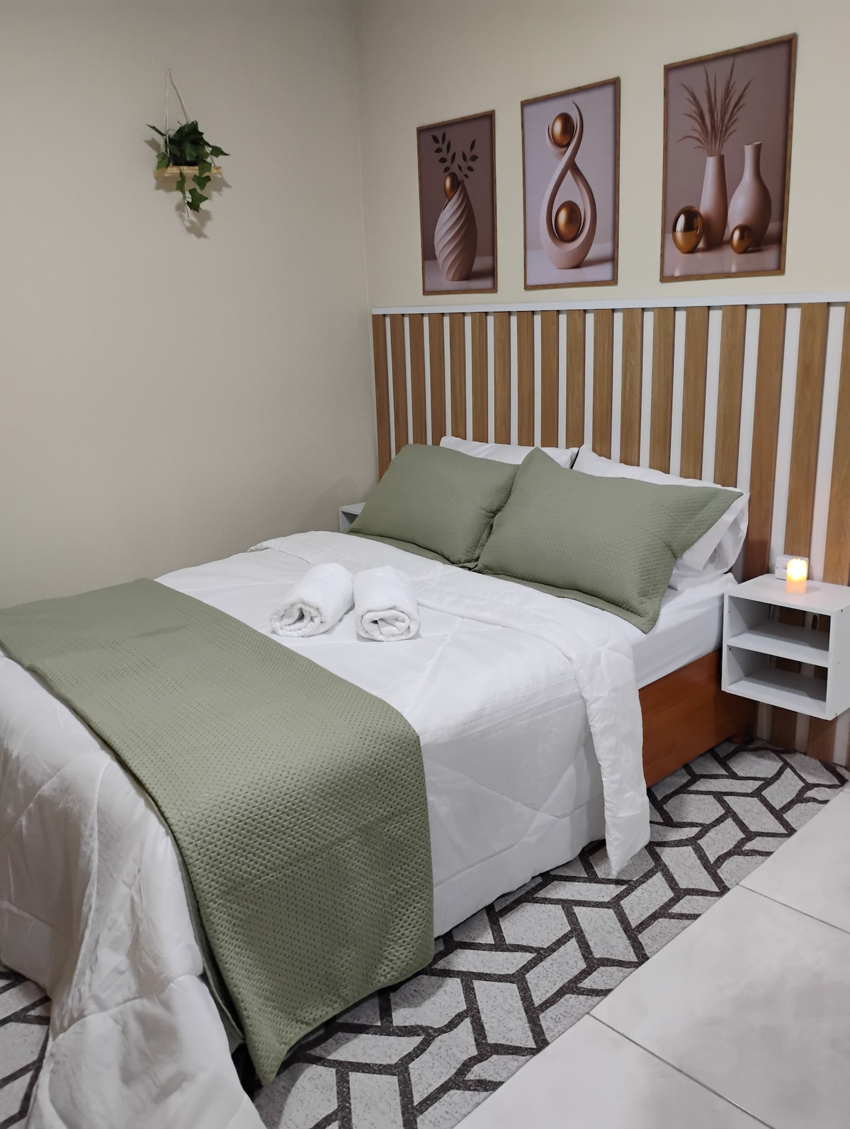 *** Hospedagem somente para 1 pessoa *** Relaxe neste espaço calmo e cheio de estilo. cama-box casal, ar-condicionado Quente/Frio e máquina de lavar. - Internet Vivo fibra (300Mb). - Cozinha privativa com geladeira frost- free,fogão,microondas, cafeteira Nespresso, e utensílios domésticos. - mesa para home-office. - TV Samsung Smart 4K - 43”. - troca de roupa de cama e banho 1x/semana. - área externa compartilhada com outro hóspede ( academia e jardim )