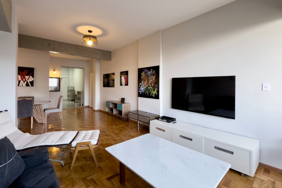 Descubra o equilíbrio perfeito entre conforto e sofisticação neste espaçoso apartamento de 180m², localizado no coração de São Paulo. Com um design contemporâneo e elegante, o imóvel foi pensado para proporcionar uma estadia excepcional, seja para lazer ou trabalho. Sao 4 quartos, sendo 2 deles com camas Queen, todos com ar-condicionado para garantir o máximo de conforto; 3 banheiros modernos e reformados, oferecendo muita praticidade; Internet de alta velocidade; 2 TV's, sendo 1 de 65" na sala.