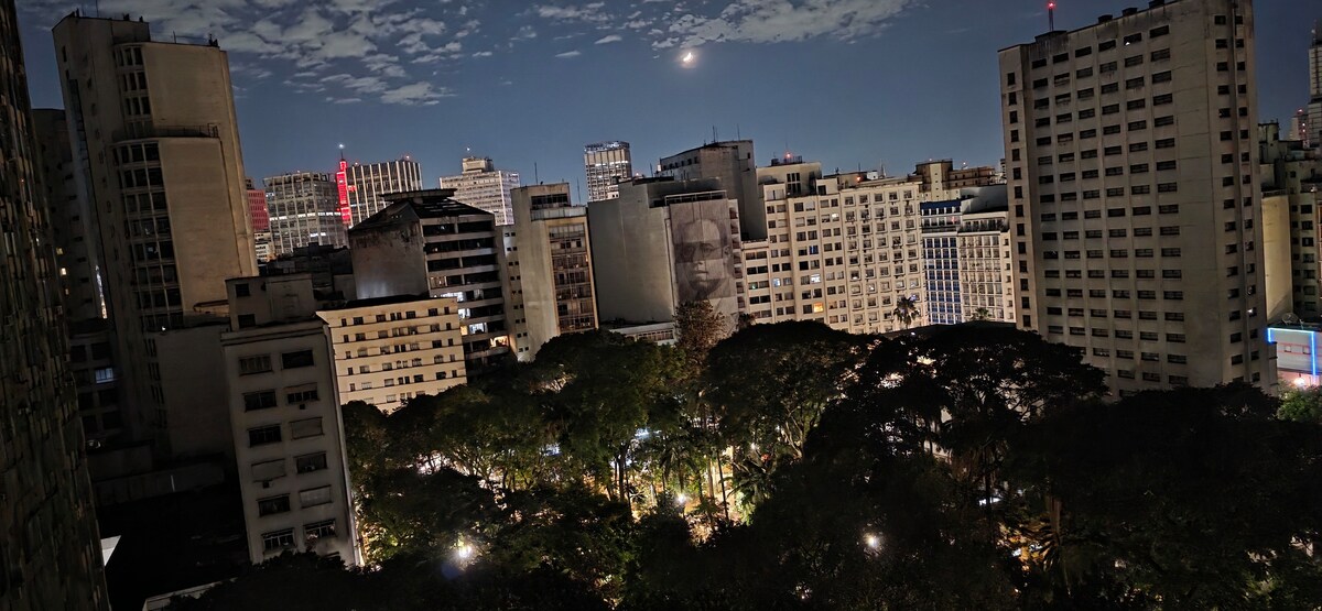 O estudio , com cerca de 34 m quadrados ,faz parte de nossa casa .Possui entrada independente. Silencioso e aconchegante, possui 3 ambientes em um único espaço: cama Queen sofá com TV , (com netflix e tv a cabo)pequena cozinha com geladeira média, pequeno fogão elétrico de 2 bocas,microondas, forno eletrico,sanduicheira elétrica e máquina de café. Excelente vista do bairro arborizado com acesso ao jardimFica a 400m da estação vila madalena do metro