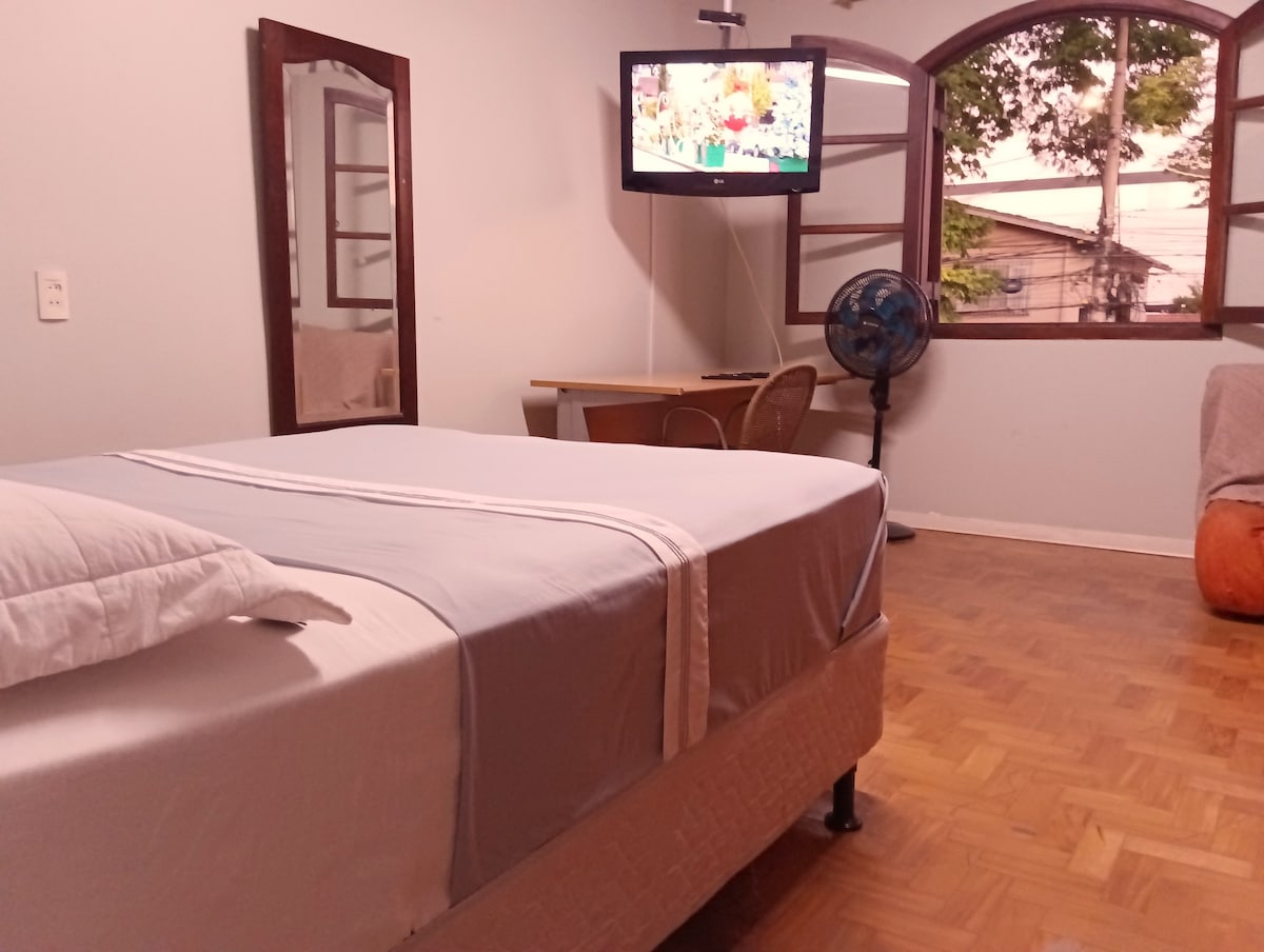 Um escape dentro de Sao Paulo, em um dos melhores bairros onde se encontra de tudo apenas em uma caminhada. Suite que atende ate 4 pessoas, localizado na parte de trás do terreno com acesso liberado a cozinha da casa da frente. Moro com meus pais na casa da frente e estaremos de prontidão para qualquer coisa. Acesso direto da rua para a suite sem passar pela 1• casa * Check in 14:00 * Check out 11:00