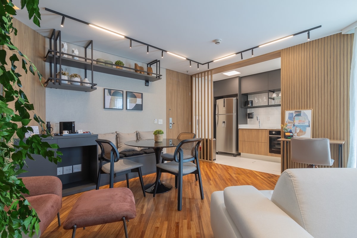 Charmoso apartamento equipado Jardins- AC-Garagem