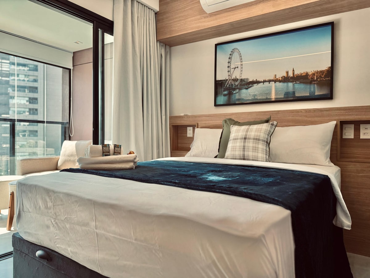 Relax in the best location of São Paulo, between Jardins and Pinheiros. This newly opened studio is a 5-minute walk to the Oscar Freire subway station, in a new building with all the infrastructure for a quiet and comfortable stay. It is on top of a bakery with artisan bread and across the street from a supermarket. The building has coworking and coliving space, laundry room, gym, rooftop pool, and a 24-hour doorkeeper. Wi-Fi 450Mbps.