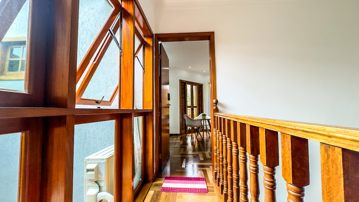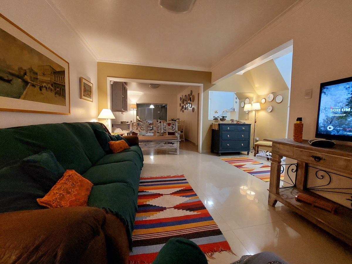 Casa silenciosa para quem quer tranquilidade e sossego em bairro verde e calmo. Bela arquitetura, bem localizada. 5 quartos, boas camas, 6 banheiros com ótimos chuveiros. Grande cozinha, sala de tv, sala de lareira. Terraços e jardins. Não podemos fazer festas nem eventos, pedimos cuidado com barulhos de todas as formas de dia e de noite. Beautiful house, nice architecture, well located. 5 Cozy bedrooms, nice beds, good baths and showers. 2 Living rooms, a big kitchen. Silence day and night.