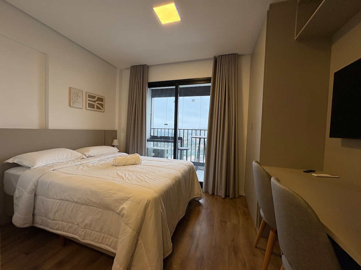 Experience One Eleven in Vila Olimpia. This modern apartment features large windows with breathtaking city views and natural light. The unit boasts 600 Mbps internet and a 4K HD TV. For total comfort, it has a Hot/Cold AC system: 27,000 BTU/h unit in the living room and 10,000 BTU/h in the bedroom. The bedroom is quiet and dark for a restful sleep. Impeccably maintained, you’ll be walking distance to top restaurants and business hubs—a safe, upscale retreat with a stunning urban backdrop.
