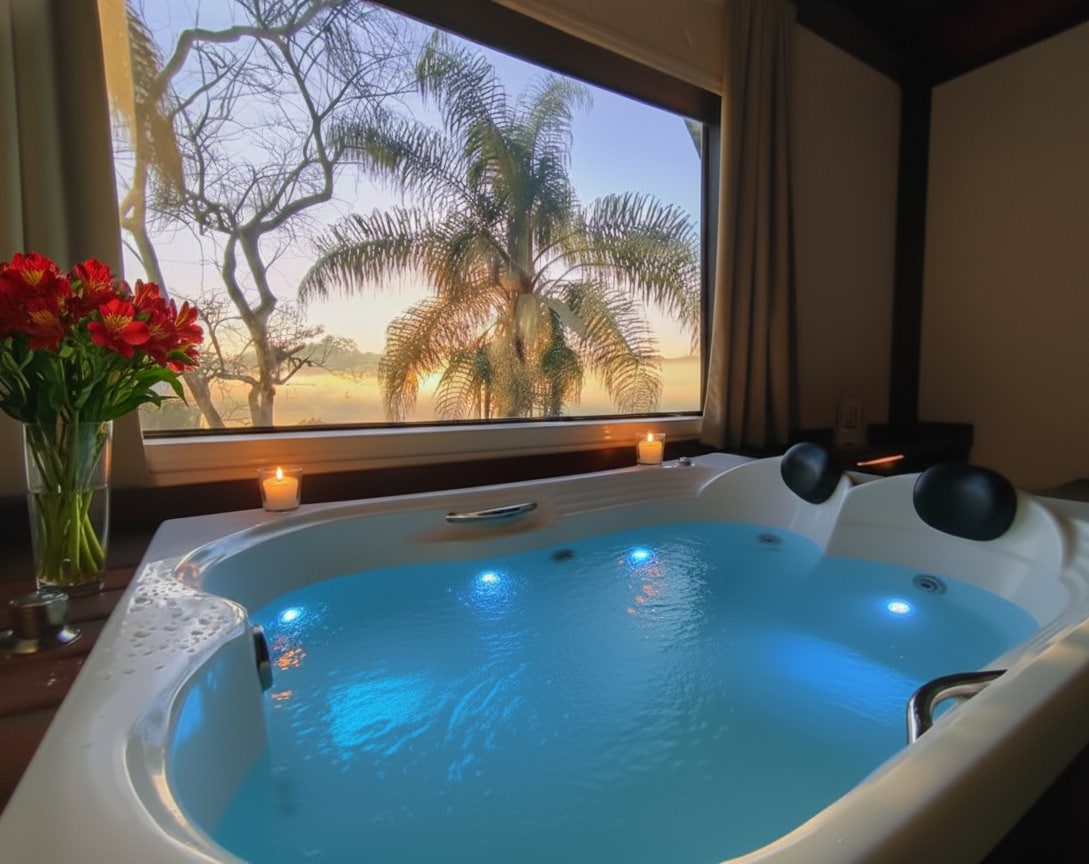 A região de Atibaia, da qual Jarinu faz parte, é classificada pela UNESCO como tendo o 2° melhor clima do mundo. O chalé Romântico (70 m2) é muito charmoso, tranquilo e aconchegante! Condomínio familiar fechado com vista para a montanha rodeado de muito verde e com várias opções de lazer: piscina, jacuzzi (aquecida), hidro ( privativa), lareira externa e interna, churrasqueira (privativa), forno de pizza (compartilhado), salão de jogos, campo de futebol, varanda, tv, sky e wifi fibra ótica).