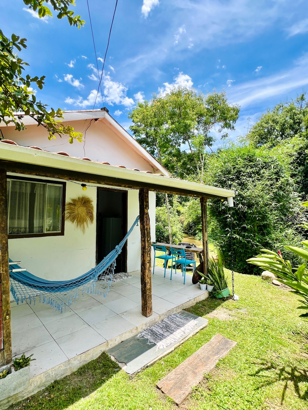 Aqui você encontra o equilíbrio perfeito entre a natureza e o conforto! Estamos localizados à apenas 1 hora de São Paulo | 20 minutos do Mogi Shopping | 40 minutos de São José dos Campos. Lugar ideal para quem procura aconchego e tranquilidade! Ao som da cachoeira que passa ao lado da cabana e com vista privilegiada para a mata, é comum avistar famílias de saguis em busca de bananas e tucanos pousando nas árvores!
