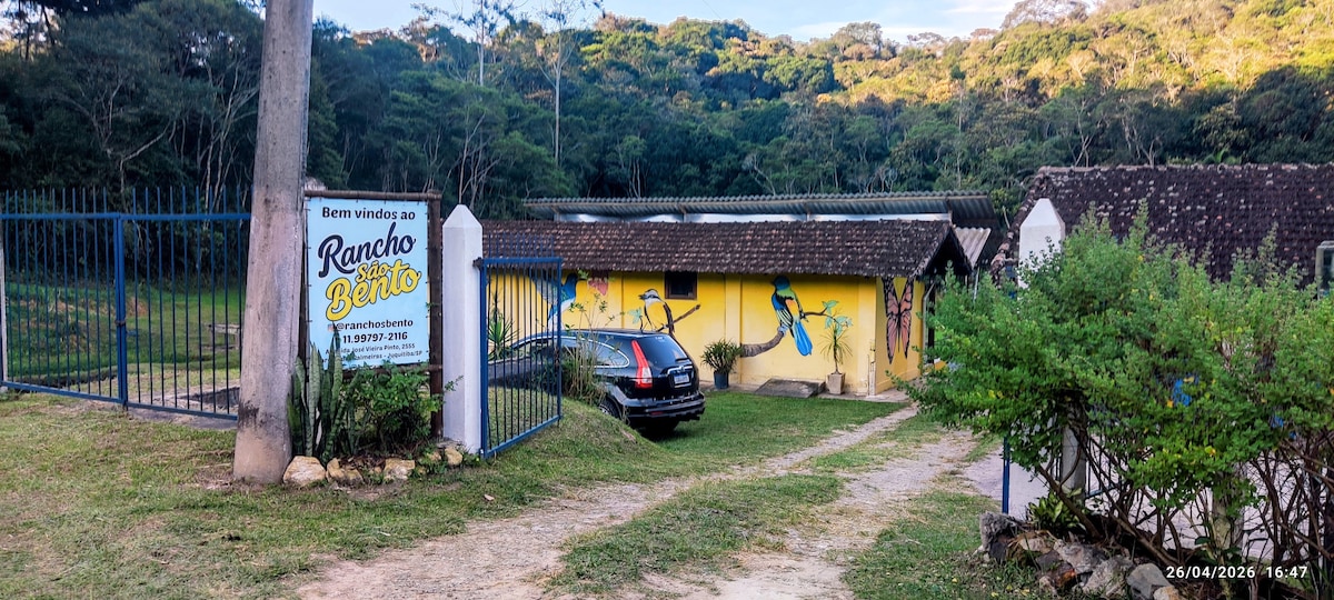 Bem-vindo ao Rancho São Bento! Desfrute de um refúgio rural autêntico onde a tradição se encontra com o conforto. Enquanto produzimos nossos itens artesanais na cozinha interna, oferecemos aos hóspedes uma área externa completa, ideal para quem busca integração e uma vivência estilo hostel. Aproveite o contato com a natureza, conheça nossos processos de produção, experimente nossas delícias e relaxe em um ambiente acolhedor. Vida no campo e sabor artesanal em um só lugar à 1 hora da capital.