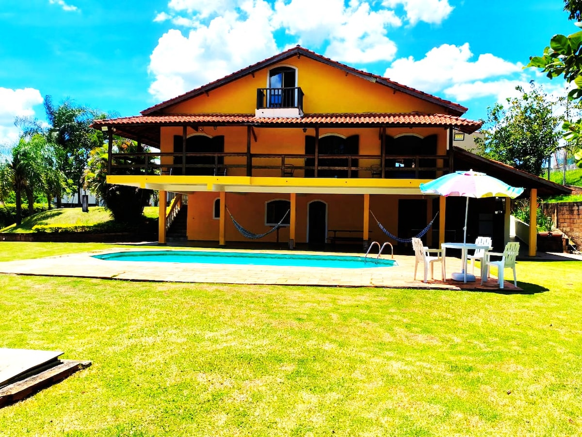 Relaxe com toda a família nesta acomodação tranquila que conjuga comodidade de estar em um espaço estrategicamente localizado próximos a cidades históricas e turísticas com muitas atrações como centros comerciais, shopping centers, restaurantes, etc., junto ao conforto, simplicidade e laser de um Sítio com ótimo infraestrutura, onde você, sua família e amigos podem aproveitar a piscina, aquele churrasquinho, sem medo do copo! No conforto e privacidade da sua suíte ou naquela rede preguiçosa!