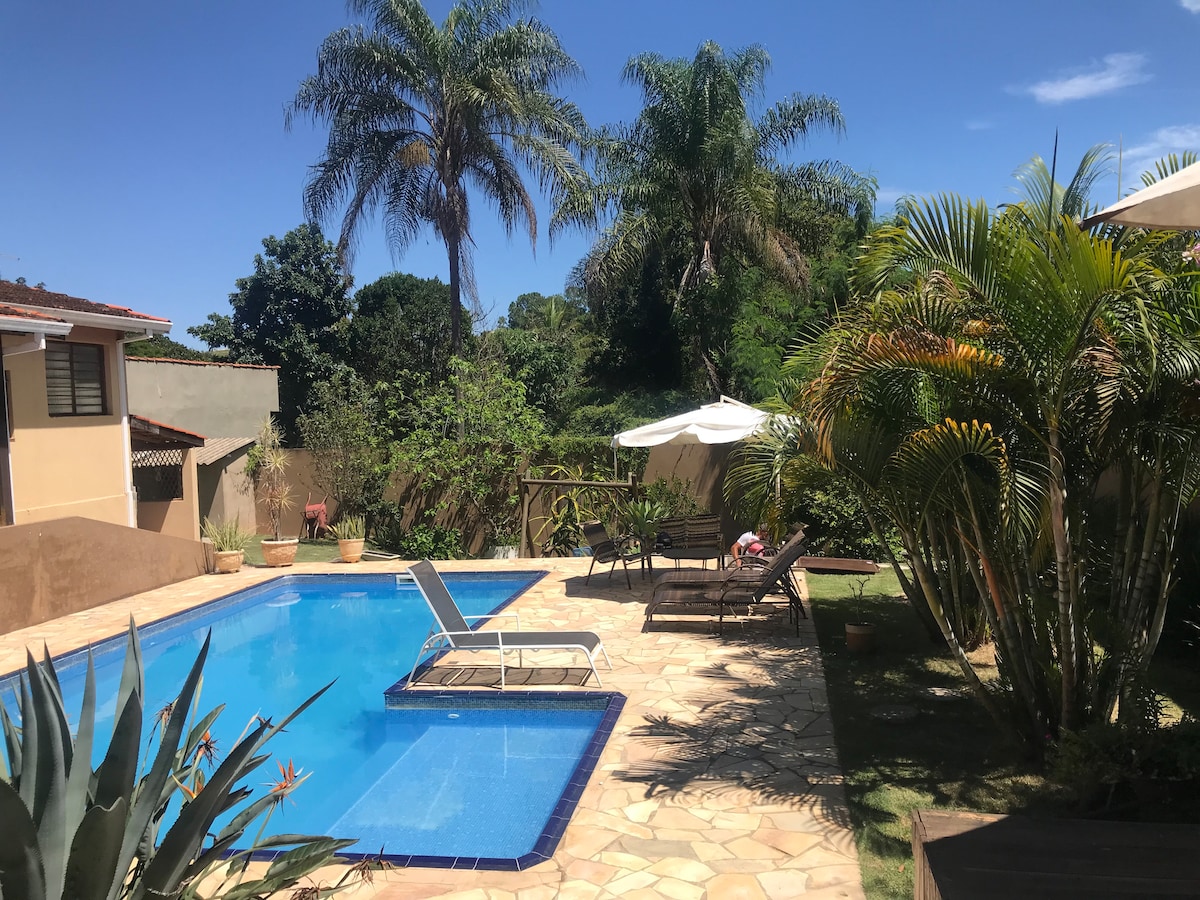 Nossa chácara fica muito bem localizada, 4 min da Fernão Dias. Ampla piscina e muito sol, jardim planejado e árvores frutíferas. Churrasqueira, área para fogueira, rede, cozinha externa equipada com utensílios, fogão a gás, geladeira com freezer, airfryer e cafeteira. Tv e Wi-Fi disponíveis Somos Pet friendly, você pode trazer o seu animal de estimação! Todo o espaço será de uso único e exclusivo para os hóspedes. Não há nenhum espaço compartilhado com outras pessoas.