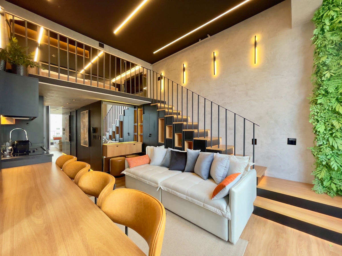 Desfrute da melhor localização da Vila Madalena em uma cobertura duplex estilo loft (110 m²), com uma vista incrível de São Paulo. Ideal para estadias temporárias residenciais, perfeita para pessoas que buscam conforto, privacidade e tranquilidade. 1º andar: sala, home office, cozinha e lavabo. 2º andar: suíte com acesso à área privativa coberta em vidro, com churrasqueira e jacuzzi. 2 vagas de garagem. Uso exclusivamente residencial. Não são permitidos eventos ou festas.
