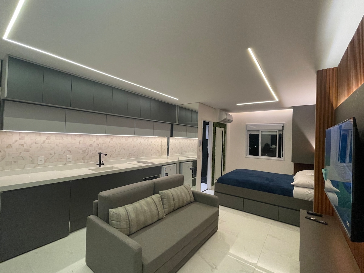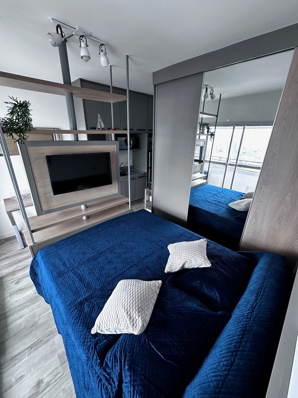 Estúdio Novo com Vista Panorâmica — 24º Andar com Piscina Infinita e Estilo! Desfrute de São Paulo com conforto e estilo em nosso estúdio montado com carinho para recebê-lo. Localizado no 24º andar com *vista envidraçada de 180° para a Marginal Pinheiros*. Um refúgio moderno, ideal para quem busca praticidade, comodidade e uma experiência diferenciada na cidade.