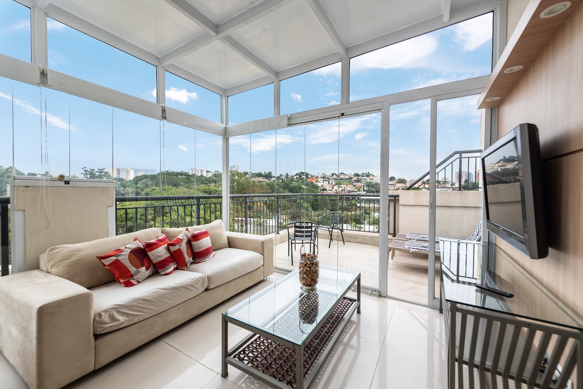 Enjoy the bohemian and artistic Vila Madalena, full of bars, restaurants and cafes. You can get to know the region or even take a tour to city parks with a bike, avaiable free of charge. Will you come to work? Focus on it at the confortable table facing the green balcony with a beautiful view of the tree tops. After all, enjoy the gym, poll, sauna and snooker room for your complete leisure.