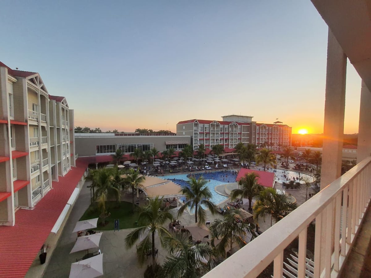 O Resort é amplo e muito agradável, com piscinas quentes e frias, sauna, salão de jogos, equipe de recreação, spa com ofurô, sala de massagem, playground, brinquedoteca, cinema, academia, restaurantes e bares. Apartamento para até 5 pessoas: 1 cama de casal queen ou 2 de solteiro (conforme a solicitação) + 1 bicama + 1 sofá-cama casal. O Thermas Water Park fica à 3 minutos caminhando (entrada não incluída, compra no local com frequentes descontos para hóspedes).
