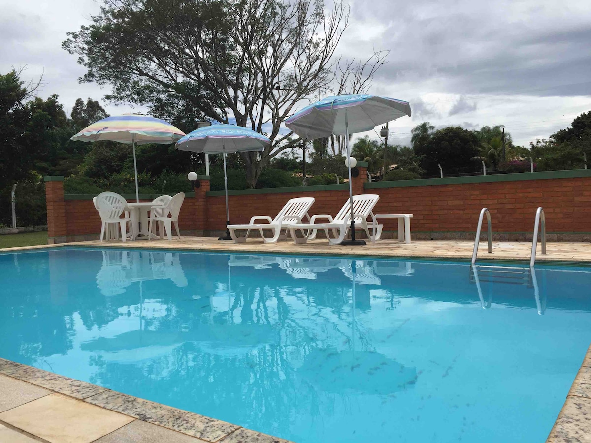 Relaxe com a família no nosso pedacinho do céu! 🌅 Recém reformada, com piscina, redes, balanços, vista da serra, pomar, estacionamento, área gourmet, churrasqueira, lareiras, aquecedor externo, casa telada, segurança 24h, TVs smart, wi-fi e jogos para a família. Apenas 500m do Thermas Water Park, 100m do Haras Bela Vista e 5min de Águas de São Pedro. Oferecemos travesseiros, lençol de elástico e cobertas leves. Todos os utensílios de cozinha e de churrasco.