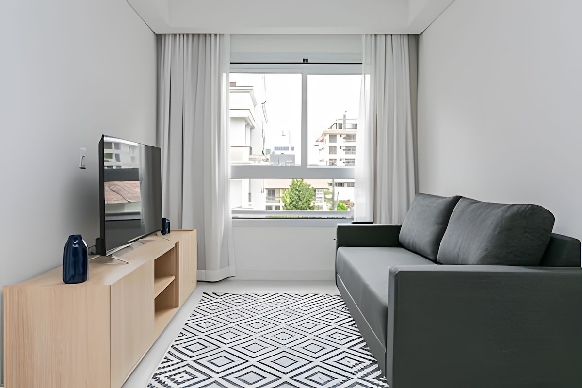 Reformado recentemente e decorado com charme, esse apartamento fica a passos do mar entre Jurerê Tradicional e Canajurê, em condomínio seguro e tranquilo. Ideal para quem busca sossego com acesso rápido ao agito de Jurerê Internacional. O espaço conta com quarto climatizado com ar‑condicionado, Smart TV, internet rápida e vaga privativa no condomínio. A decoração moderna, com toques da cultura local, cria uma atmosfera acolhedora e autêntica — perfeita para relaxar ou explorar a Ilha!