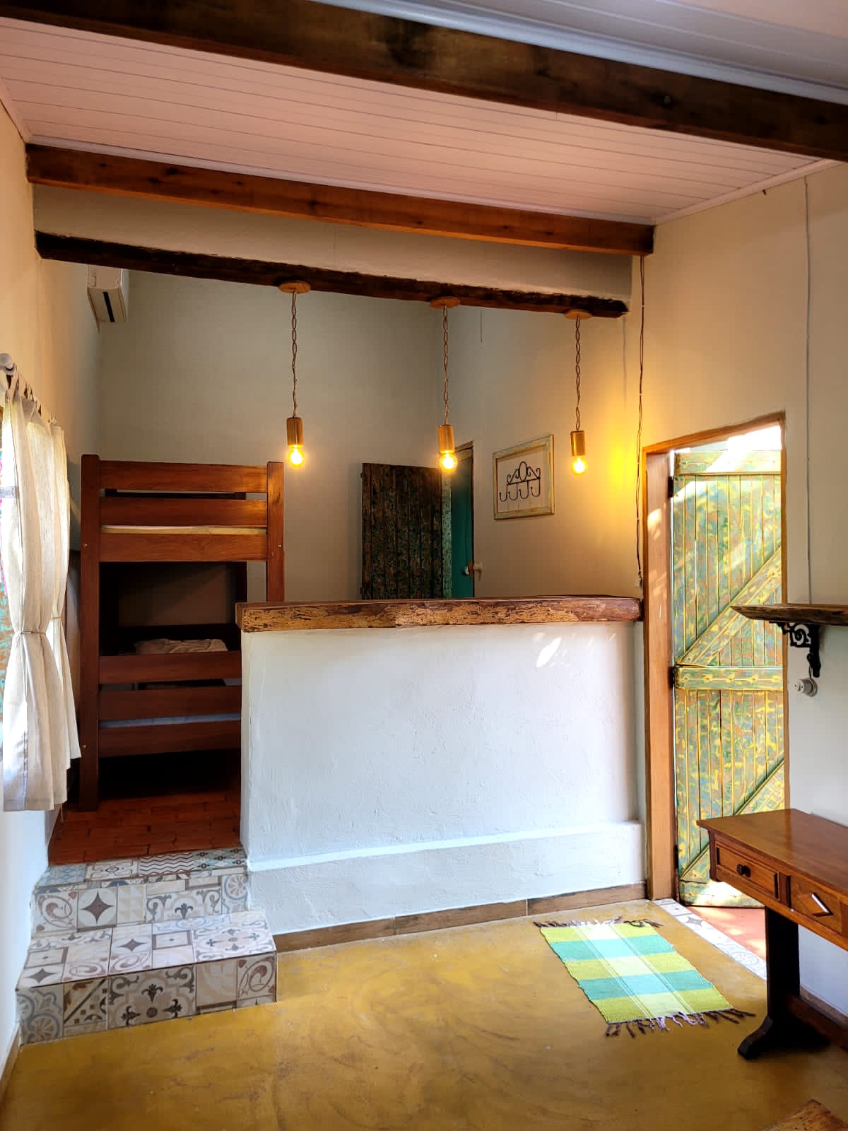 Acomodações com cama King Size, TV Smart, frigobar, ar-condicionado, bons chuveiros, banheiros individuais.