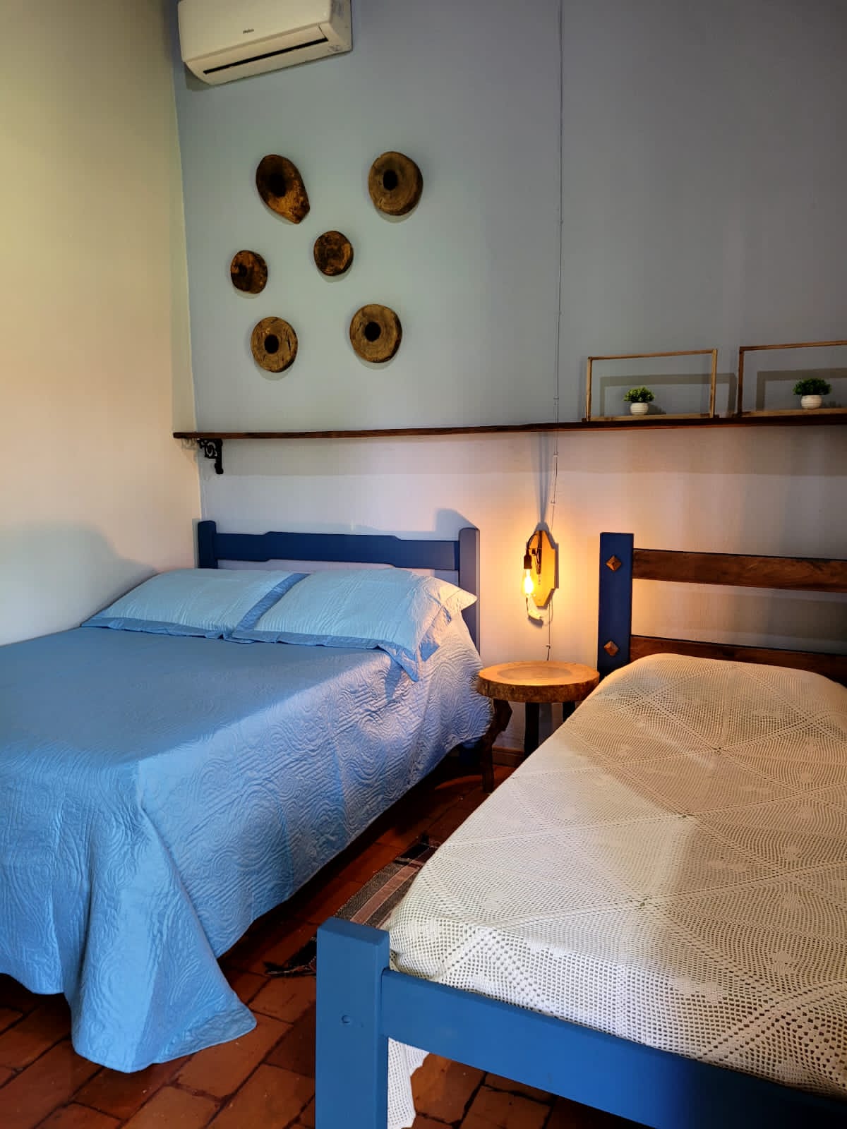 Os quartos rústicos da Pousada Quintal de Minas unem o charme colonial ao conforto moderno. Com móveis de madeira maciça, detalhes artesanais e tons naturais, oferecem camas aconchegantes, ventilação natural e uma atmosfera tranquila. Um refúgio perfeito para relaxar e se conectar com a essência de Minas Gerais.