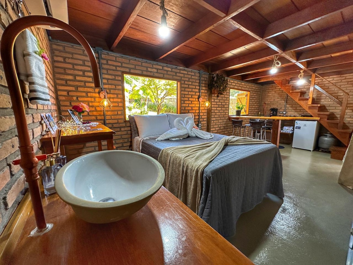 Suíte Master na Zandaia Eco Pousada. Decoração impecável e aconchegante. Detalhes que fazem a diferença. Tudo foi pensado para surpreender os nossos hóspedes. A suíte master possui adega, frigobar, Smart TV, Closet, varanda e um deck suspenso com Jacuzzi privativa com uma vista de tirar o fôlego. Venha viver momentos inesquecíveis com a melhor vista da Serra da Canastra!