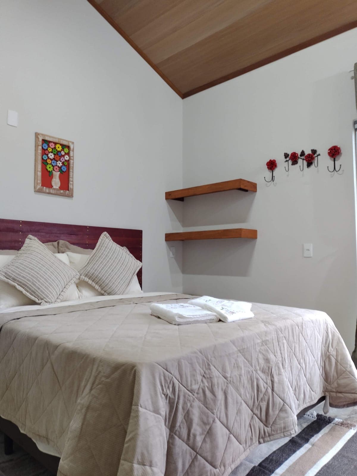 Suíte aconchegante com vista para a Serra da Canastra; localizado a 5 minutos do centro, e de fácil acesso. Café da manhã todos os dias. Duas camas (sendo elas uma de casal e outra de solteiro, ambientadas com divisão), TV, frigobar, Wi-Fi, ventilador e varanda, além de área compartilhada com cozinha funcional, sala e garagem coberta.
