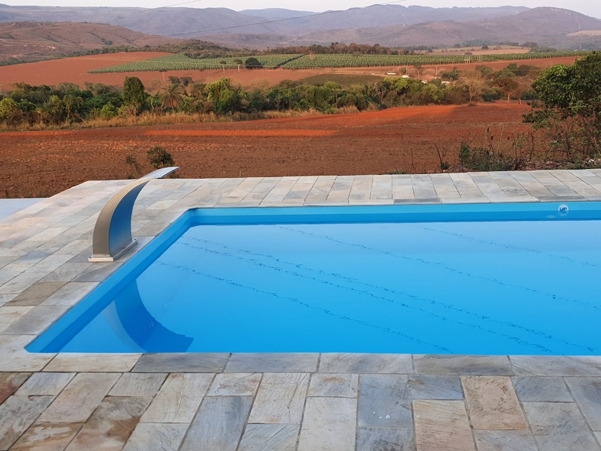 Área de lazer com 2 suítes, banheiros com box, cada quarto com 1 cama de casal e 1 cama de solteiro com cama auxiliar, ar condicionado, piscina de 20.000 L com spa/hidromassagem integrado, chuveiro/ducha externo, ombrelone, área extrena toda gramada com playground infantil, churrasqueira, cervejeira (-4,5º), freezer, forno elétrico, micro-ondas, utensílios de cozinha novos (pratos, copos, talheres). Local recém construído com fino acabamento e com uma vista maravilhosa para a Serra da Canastra.