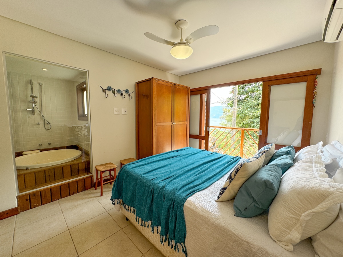 Casinha charmosa e aconchegante de costeira, construida em harmonia com a natureza e o mar. É um verdadeiro paraíso para quem busca sossego, exclusividade e privacidade. O acesso direto ao mar pela costeira é uma raridade na Ilhabela e esse privilegio é apenas para os nossos hospedes. Esse acesso é feito por escadas confortaveis onde temos um deck de madeira com ducha. A casa é cercada pela mata original que é residencia de uma grande variedade de passaros e animais silvestres.