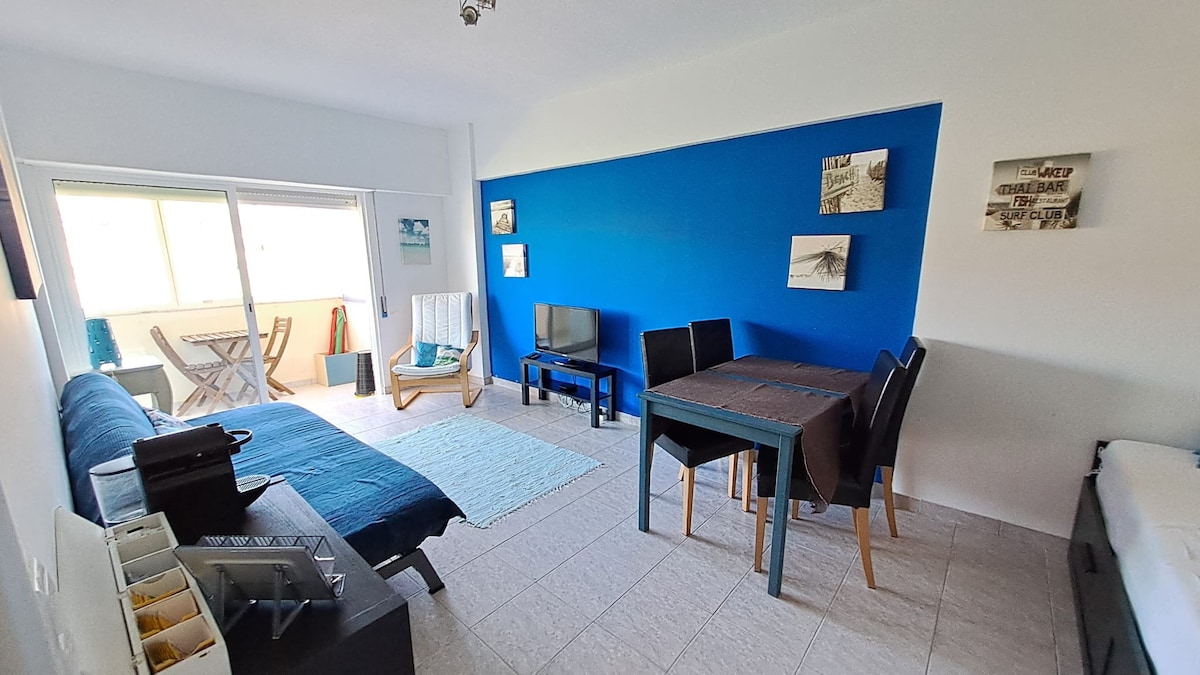 Atlantic View is located at the seafront, just 1 min. from California Beach. It has a bedroom and a living room with a sofa bed that can be converted into a second bedroom, offering privacy to all guests. You can relax comfortably on the large balcony that the apartment offers, enjoying the magnificent view over the sea. The apartment is equipped with wi-fi, cable tv, washing machine and dishwasher, microwave, coffee machine, toaster, among others. Ideal for family or romantic holidays!