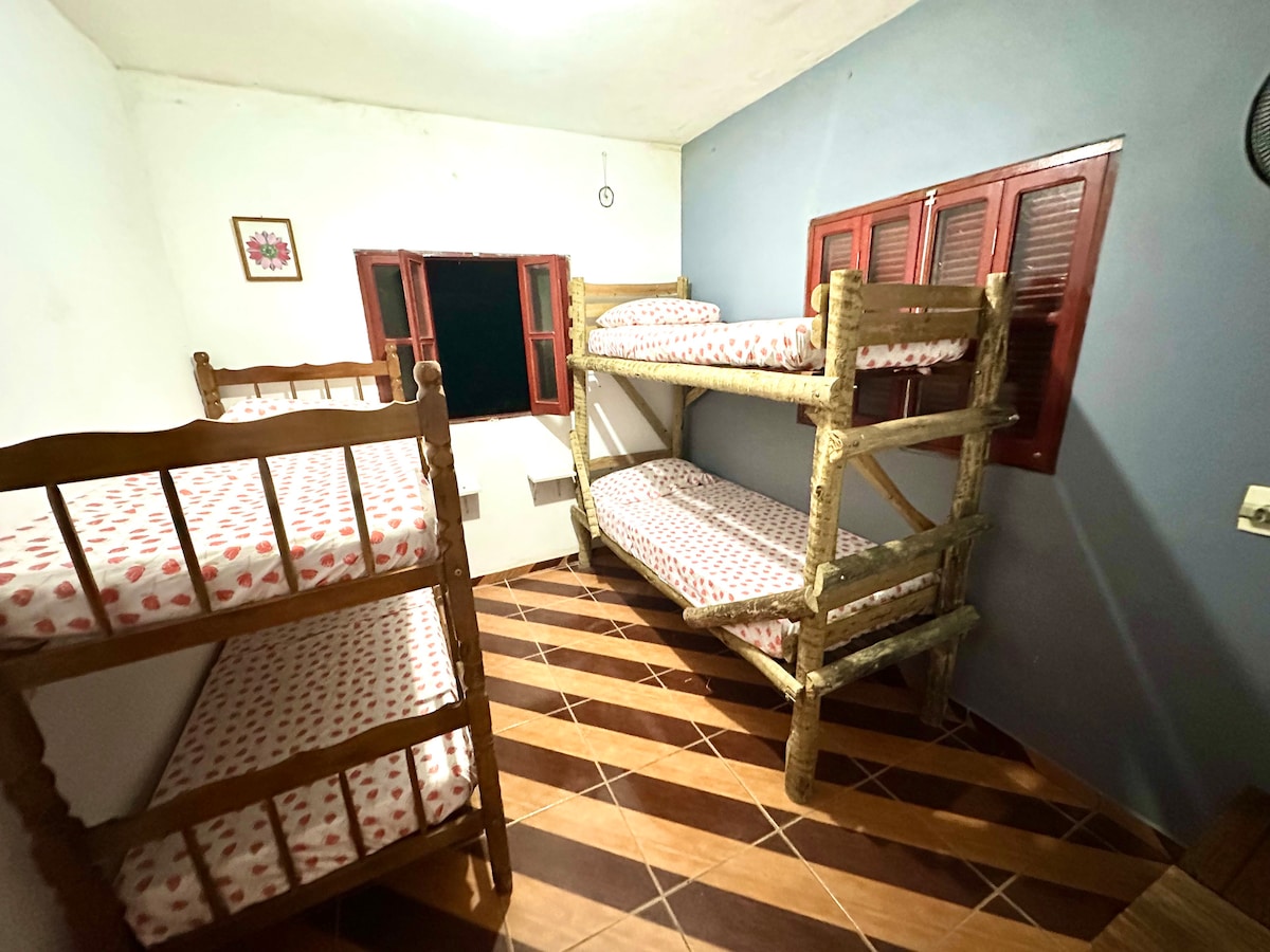 O quarto de solteiro é compacto, feito com muito carinho. Tem porta com chave, ventilador, espelho, uma prateleira e não possui janela. Ideal pra quem traz pouca bagagem e busca um cantinho simples, reservado e acolhedor. 💛