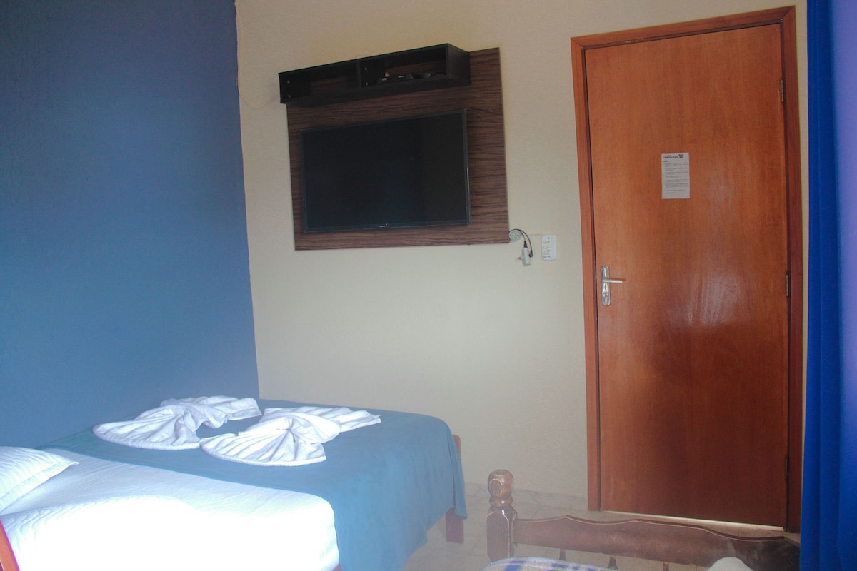 Aqui você encontrará uma Suíte completa para casal ou até três pessoas com uma cama de casal e uma de solteiro, Smart TV 40", geladeira duplex Frost Free, ventilador de teto, banheiro privativo com chuveiro eletrônico quente, sinal Wi-fi. Nos espaços de uso comum temos estacionamento fechado, sacada com vista para a cidade e para o pôr do sol, cozinha com fogão e microondas e área de churrasqueira. Estamos na melhor localização da cidade: entre a Rodoviária ( 50 m) e a igreja de pedra.