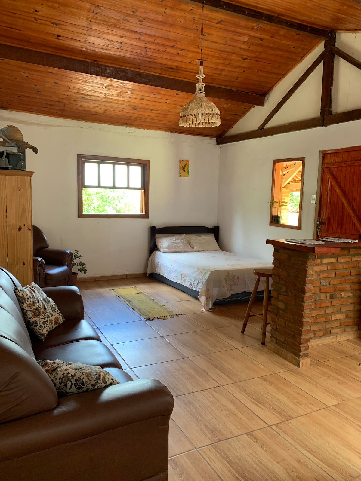 Descanse e relaxe neste espaço aconchegante e tranquilo, na área de conservação, 8 KM da cidade de São Thomé, perto da cachoeira Véu de Noiva com vistas panorâmicas. O chalé acomodar duas pessaos e é bem equipado com: -Uma sala com uma cama /colchão de molas ensacadas, smart TV e uma mesa para jantares românticos. -Uma cozinha com um cooktop a gás, micro-ondas, cafeteira e utensílios para cozinhar. -Um banheiro com água quente de aquecedor solar.