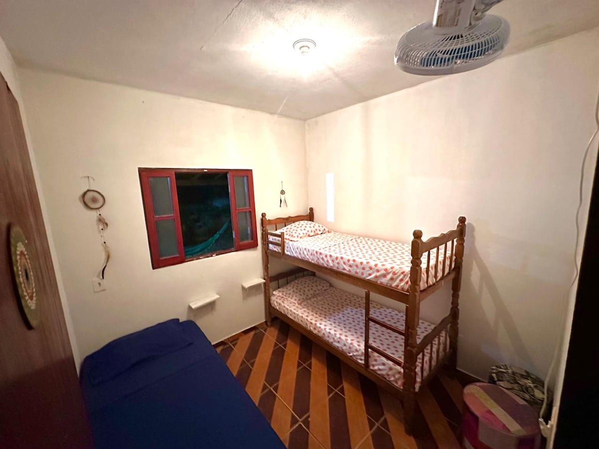 🏠Casa no andar de cima do Sobrado da @chacara_filhosdaterra. A propriedade possui: ✅Piscina compartilhada; ✅Campo de futebol; ✅redário; ✅Cozinha completa; ✅Sala com SMART TV; ✅ Wi-Fi disponível; ✅ Varanda ampla; ✅ Churrasqueira portátil; ✅Roupa de cama, lençóis, coberta e papel higiênico; e ✅ Todos os utensílios domésticos. ✳️A casa suporta até 12 pessoas 🔴 Não disponibilizamos tolhas de banho e rosto, nem sabonete e nem shampo. Obs.: As fotos são da casa de cima.