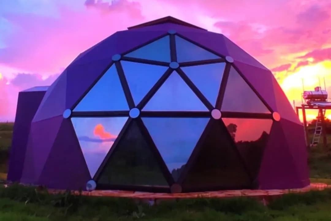 Viva uma experiência mágica em nosso domo geodésico em São Thomé das Letras – Sobradinho de Minas! Ideal para casais, o domo oferece cama queem size, mesa com cadeiras, frigobar, projetor para ver seus apps favoritos, projetor galáctico, ventilador e banheiro. Incluímos roupas de cama, toalhas e cobertores. Do lado de fora, relaxe sob um pergolado com redes e balanços, se refresque na ducha e caminhe pelo nosso bosque com riacho. Um refúgio encantado para se desconectar e viver momentos únicos.