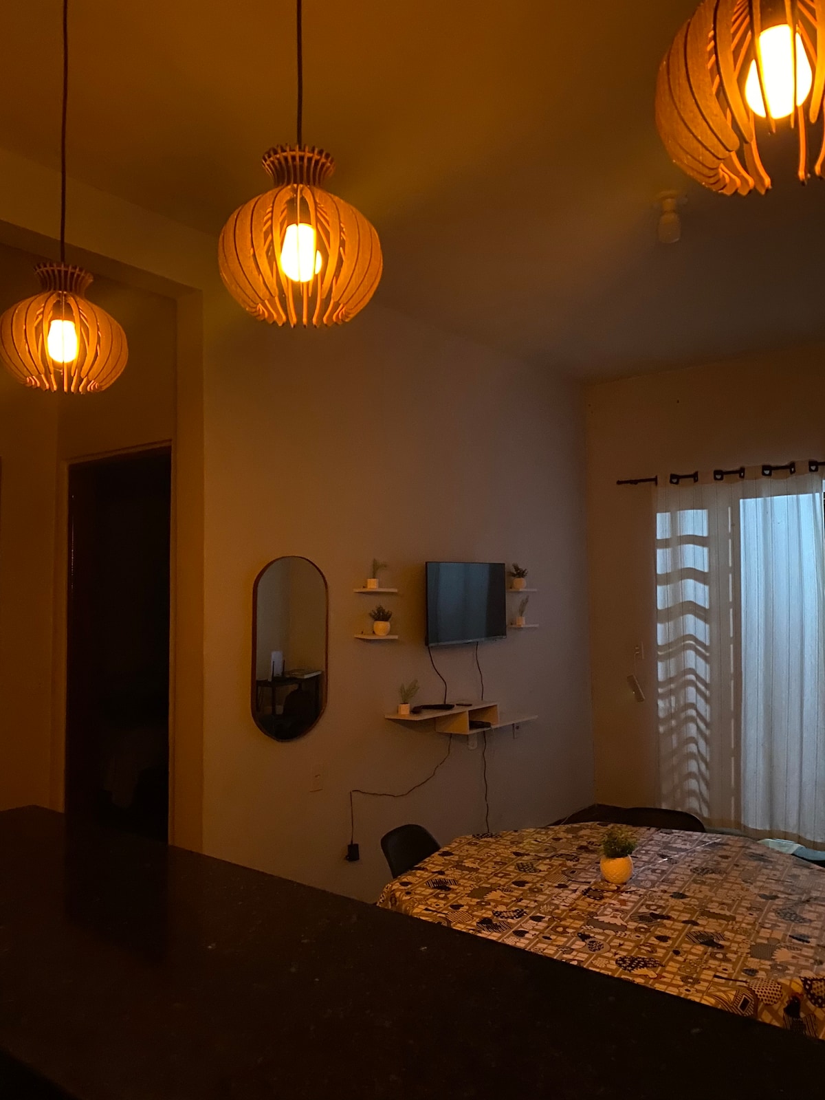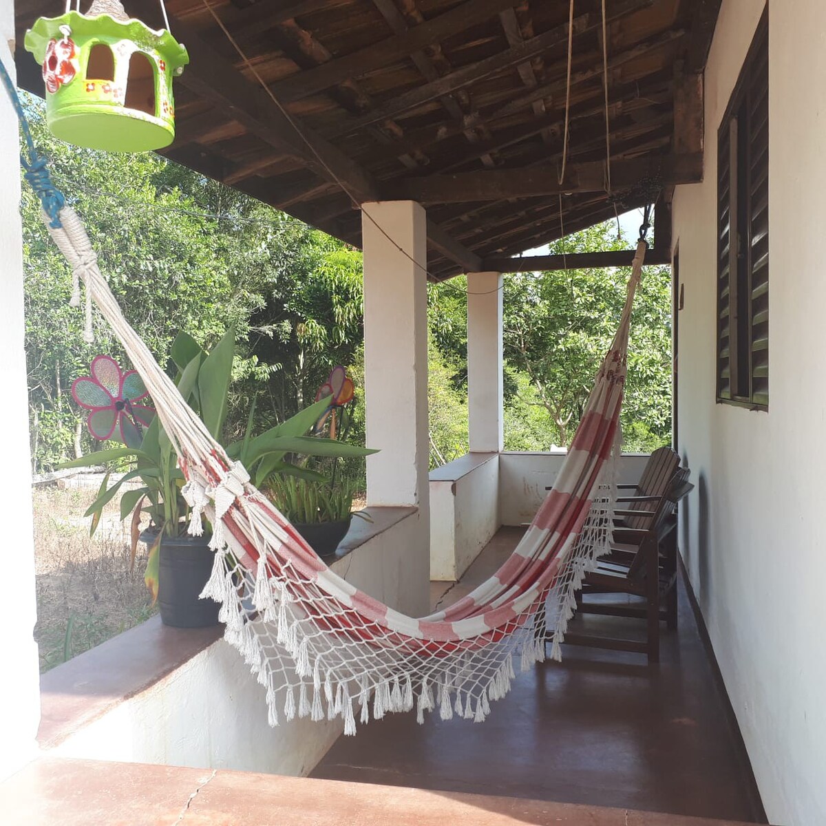 🏠Casa no andar térreo do Sobrado na Chácara Filhos da terra. A casa possui: ✅Piscina compartilhada; ✅Campo de futebol; ✅redário; ✅Cozinha completa; ✅Sala com SMART TV; ✅ Wi-Fi disponível; ✅ Armador de rede; ✅ Churrasqueira portátil; ✅ Cozinha secundária com fogão a lenha; ✅Roupa de cama, lençóis, coberta e papel higiênico; e ✅ Todos os utensílios domésticos. ✳️A casa suporta 7 pessoas 🔴 Não disponibilizamos tolhas de banho e rosto, nem sabonete e nem shampoo. * As fotos são da casa de baixo.