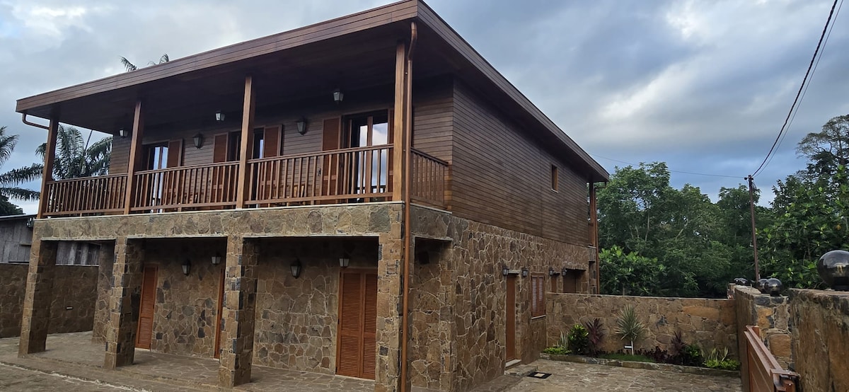 Descubra o paraíso em Torres Dias, São Tomé e Príncipe. Rodeada por natureza tropical, esta propriedade inclui duas casas independentes, ideais para famílias ou grupos. A casa do piso de baixo, acomoda 4 pessoas, com 2 quartos, cozinha equipada, sala com TV e estacionamento privado. Ambas partilham uma piscina no jardim, perfeita para relaxar e aproveitar a tranquilidade e beleza natural da ilha incríveis!!