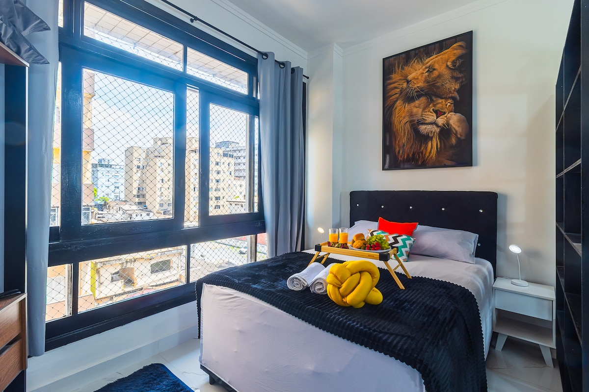 • Frente para o mar, arejado e muito aconchegante; • Localização excelente no Itararé - tudo o que precisa ao redor (restaurantes, mercados, padarias, farmácias), podendo fazer tudo a pé; • 1 vaga disponível - garagem rotativa, com manobristas 24h (chave fica na portaria). Caminhonetes não são aceitas. • 2 quartos --> acomoda preferencialmente 4 pessoas, podendo ser estendido até 6, com adição de R$ 85/diária para 5ª e 6ª pessoa extra; • Pet friendly --> taxa única de R$ 35,00/pet