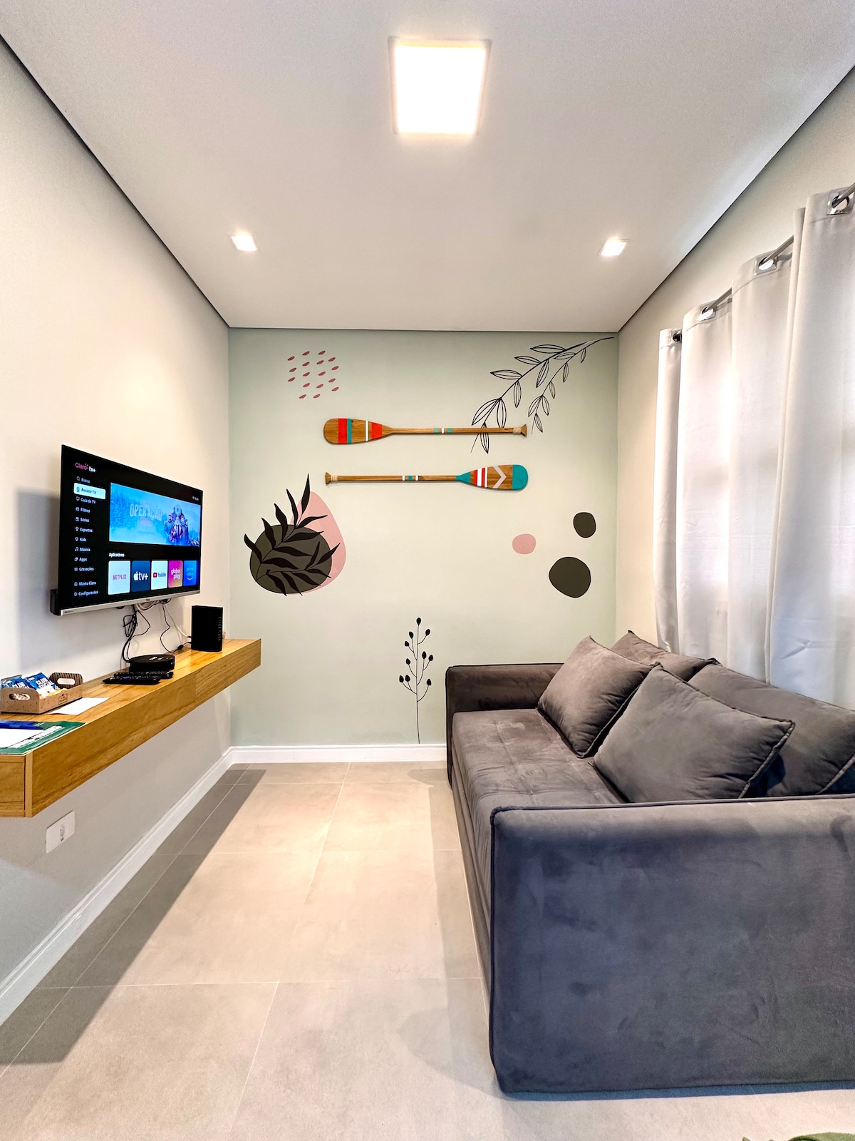 Relaxe neste espaço calmo e cheio de estilo e fique zen. Temos um quarto com cama Queen oriental com colchão Castor padrão hotelaria, sala de estar com sofá-cama casal (espuma D33) e smart TV de 43 polegadas com apps HBO Max, Disney, Prime e Apple TV, além de cozinha equipada. O espaço também conta com ar condicionado Split inverter de 18.000 Btus. Além disso temos espaço para home office, com internet fibra de 500 Megas, de frente para o oceano. Espaço kids, salão de jogos e Pet Place 🐾