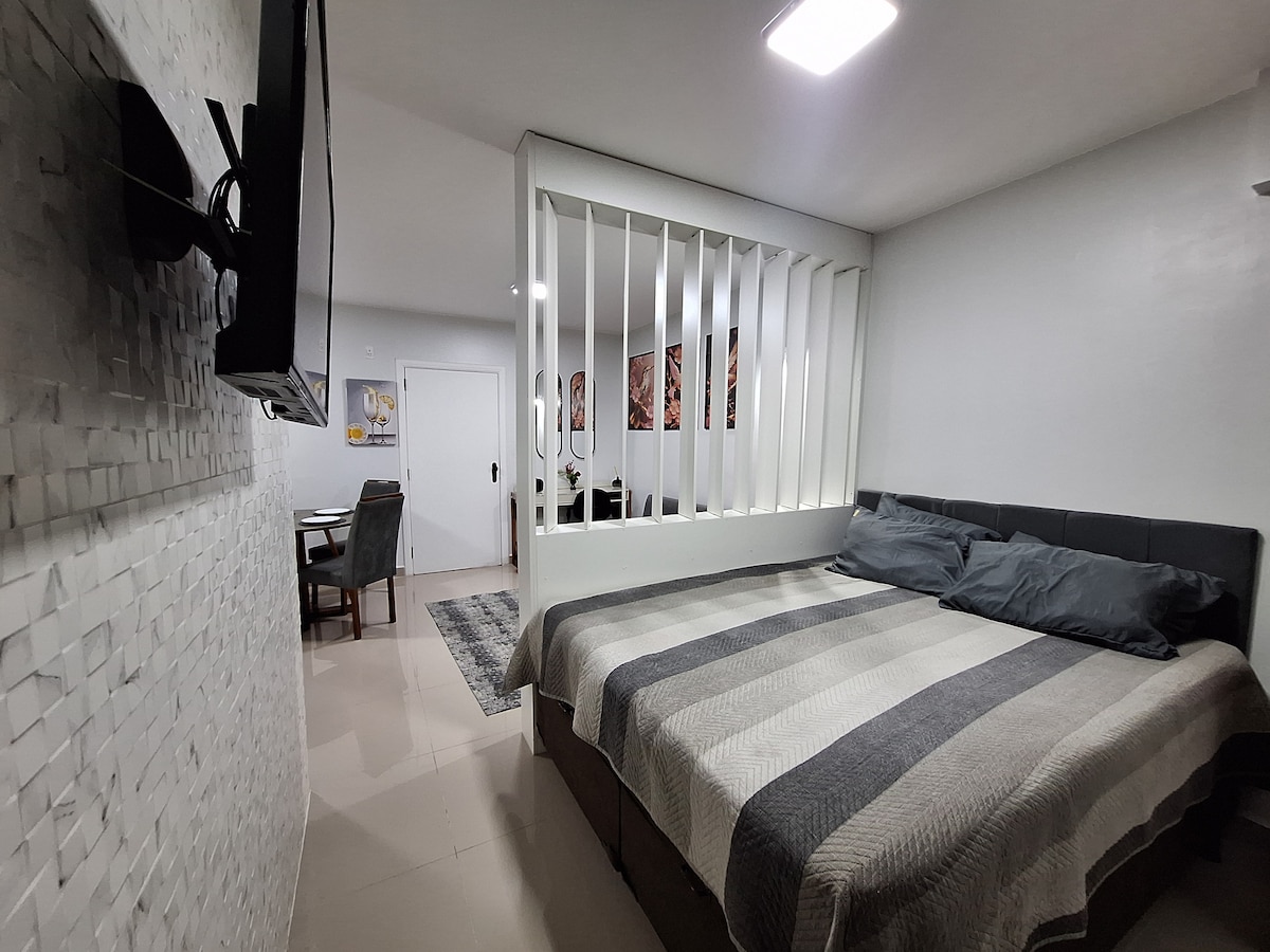 Bem-vindo ao Ruya Flat, ideal para quem busca conforto, privacidade e descanso perto da praia! ✨ Relaxe na hidromassagem privativa após um dia explorando São Vicente. Acomoda até 4 hóspedes (incluindo crianças e bebês) – perfeito para casais, pequenas famílias ou grupos. 🍳 Cozinha completa 📺 Smart TV 📶 Wi-Fi rápido 📍 Localização estratégica: pertinho da orla e dos principais pontos turísticos da cidade