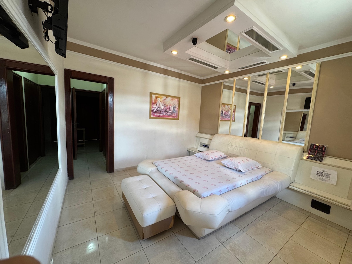Suíte mobiliada. Possui garagem, tv, ar condicionado, localizada a 700m da praia.