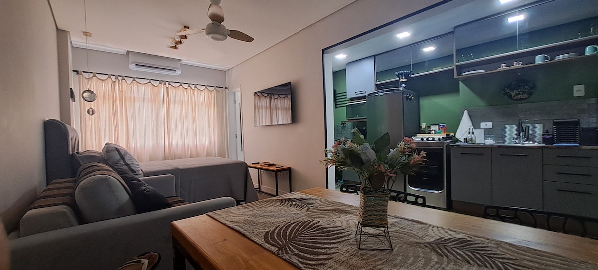 Studio minimalista e funcional. A localização ideal para descansar das agitações do dia a dia. Por isso , esse lugar esplendido, onde encontra-se a natureza, a cidade e a sensação de estar no céu em uma perfeita harmonia, é uma brilhante opção de hospedagem. Além disso , o privilégio de aproveitar, nas grandes janelas do Studio ,a melhor paisagem da baixada santista. Ainda mais , as luzes da cidade iluminar o seu jantar e apreciar cada detalhe é algo único.