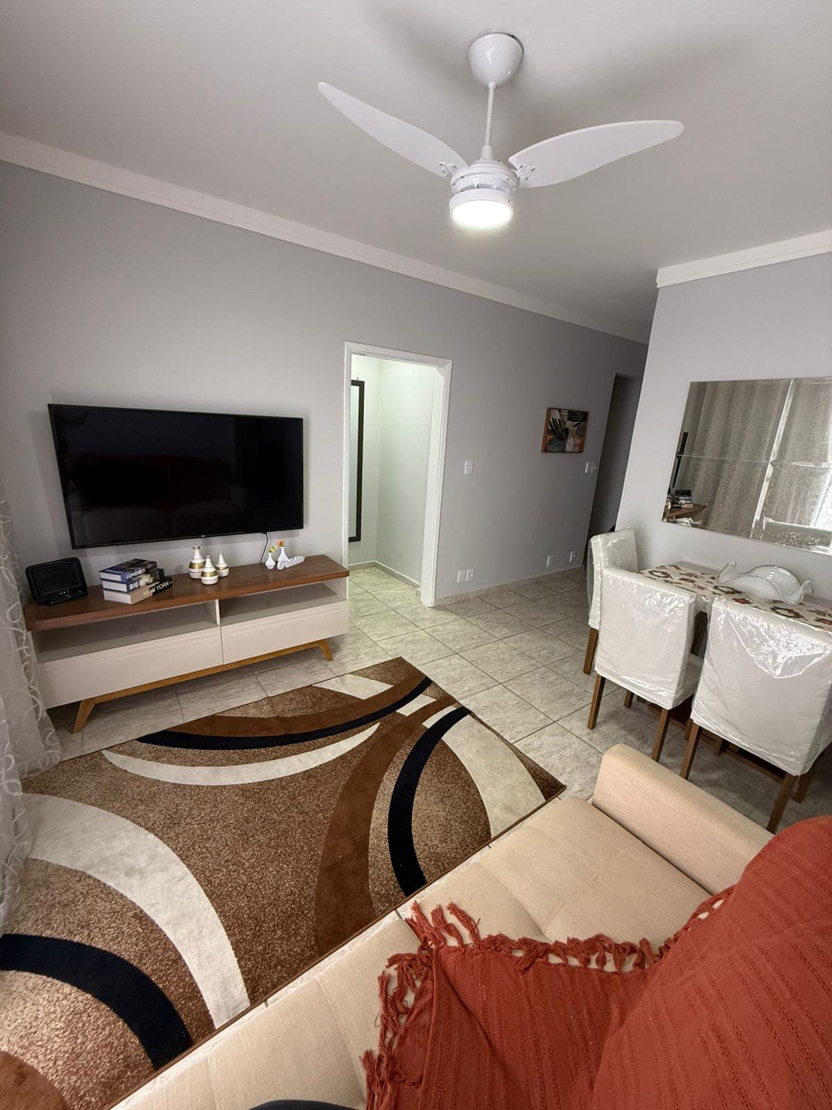 Lindo e aconchegante ap. no Forte. Há 5 minutos a pé da praia, 10 a 15 do comércio da Av. Costa e Silva e Litoral Plaza Shopping. Ciclovia e playground na orla. Sala c/ Smart Tv, sofá-cama e ventilador. Dormitório cama box, 2 colchões de casal, 01 de solteiro e ventilador .Cozinha equipada com eletrodomésticos e todos os utensílios. AS tábua, ferro e máq.de lavar. Sacada c/ churrasqueira, mesa, 5 cadeiras e cooler. Banheiro c/ box de vidro. 01 vaga.