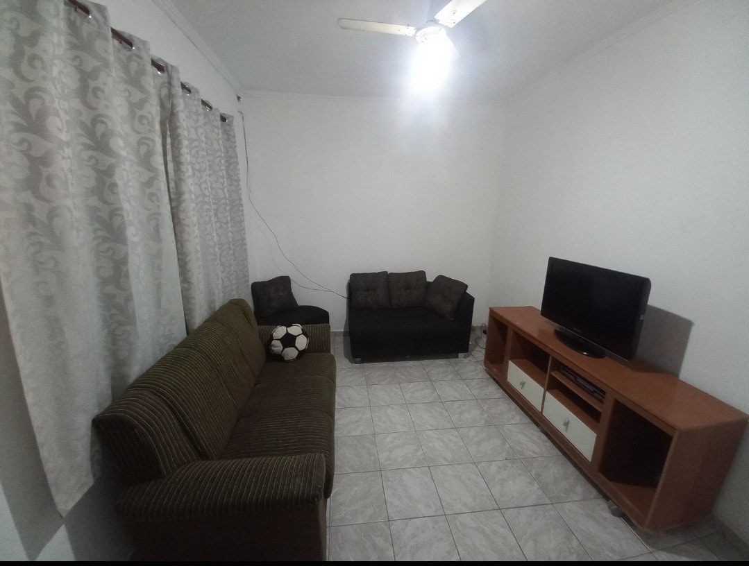 Apartamento tipo sala living, bem iluminado e arejado, com varanda espaçosa e vista para o mar, localizado no 5º andar de um prédio em frente à Praia do Gonzaguinha em São Vicente. O prédio é de frente para o mar entretanto o apartamento é lateral proporcionando noites tranquilas. Possui portaria 24h e 1 vaga de garagem garantida. Nas acomodações dispomos de ar condicionado split, quarto com cama de casal separado por porta de correr e um closet. Fornecemos roupa de cama e toalha de rosto.