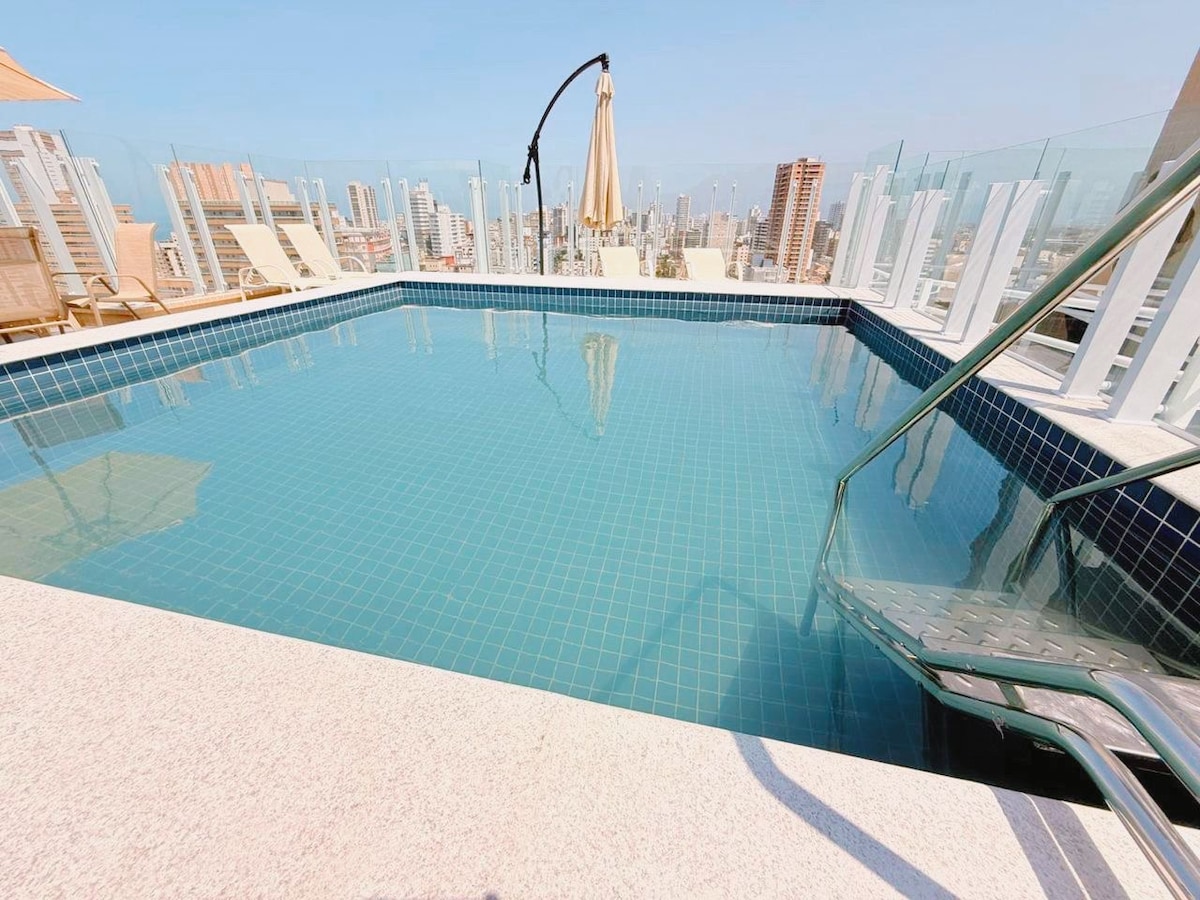 Studio novo no coração do Boqueirão, a apenas 700m da praia. Desfrute da piscina e sauna no rooftop com vista aberta com churrasqueira a carvão. Você também conta com roupas de cama e banho, cafeteira Nespresso e cozinha equipada para sua estadia ser prática e agradável. Vaga de garagem e portaria e mercadinho 24h garantem praticidade, segurança e tranquilidade. Localização estratégica: faça tudo a pé. Restaurantes, bares, cafés, shopping e comércio variado a poucos passos.