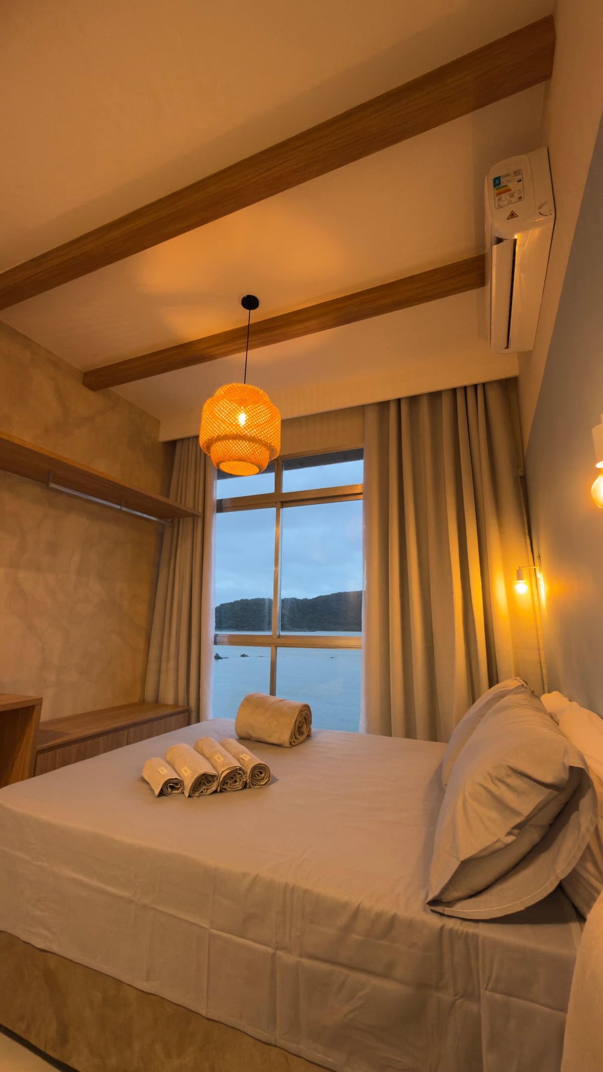 Vista deslumbrante, aconchego e pé na areia.