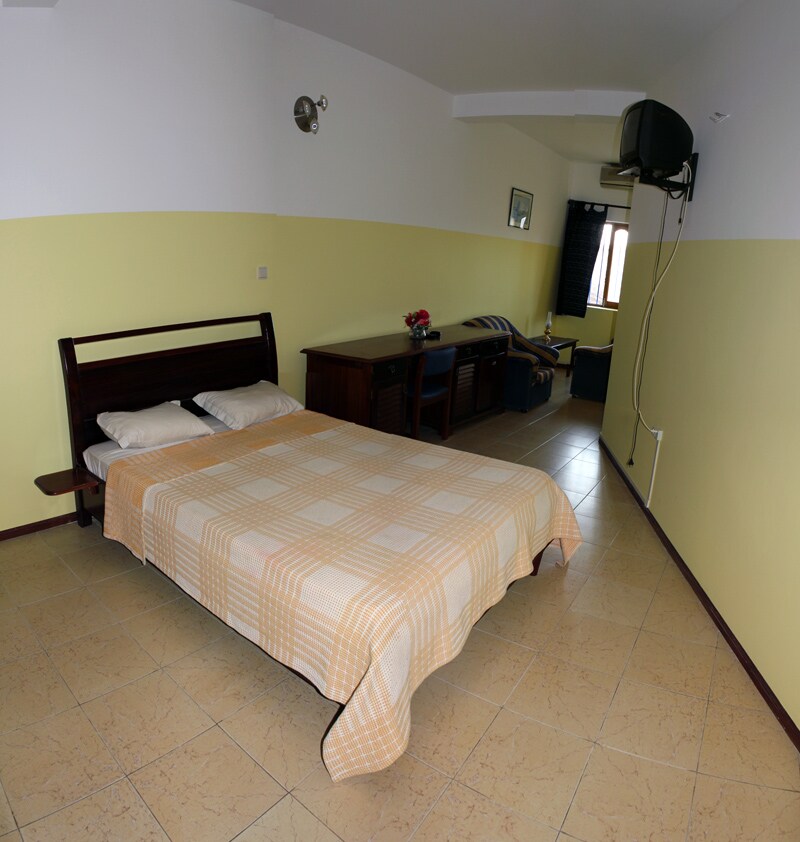 Charmant petit hotel situe entre le centre ville et la plage, 5 mn a pied. Belle vue sur cette plage, sur la mer et sur l'ile de Santo Antao. Pension de famille diner ou dejeuner sur commande. Air conditionne, salle de bain individuelle, TV satellit