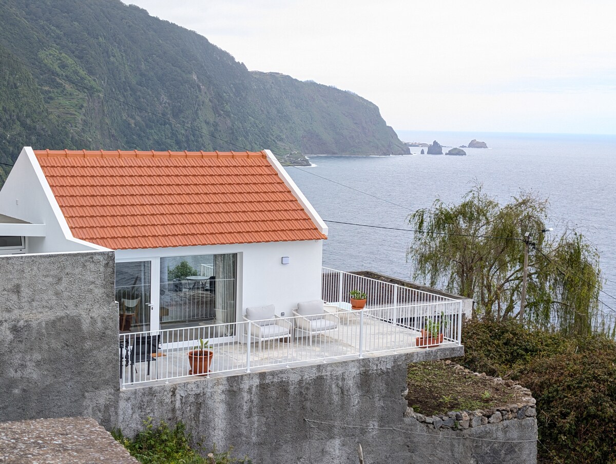 Nestled on the picturesque north coast of Madeira in Ponta Delgada, this charming studio offers breathtaking views and a unique location right next to the sea and a beautiful beach complex. Imagine waking up to the soothing sound of waves and sipping your morning coffee while taking in the stunning ocean vista. This beautifully decorated studio is the result of a year-long project that emphasizes the use of alternative decorations and recycled materials, creating a cozy and welcoming retreat.