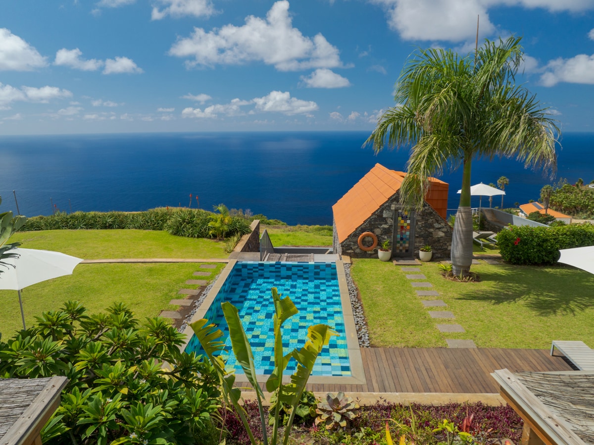 Meu Pé de Cacau is a tropical fruit garden surrounded by dramatic cliffs to the north-east and the vast Atlantic Ocean to the south-west. Four beautifully designed and sustainably built studios share the property with an infinity pool, social areas and luxurious plantations hosting hundreds of different tropical fruits, planted on traditional agricultural terraces hand crafted in basalt stone.